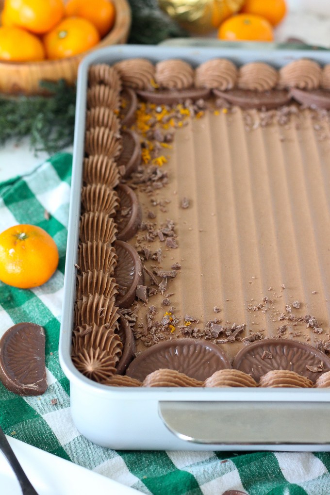 You can use any 9×13 pan/dish! I used my Caraway, but you can use anything that you have. I also love my 868 large star french piping tip for the border. Speaking of buttercream, let’s get to my amazing chocolate orange buttercream recipe!